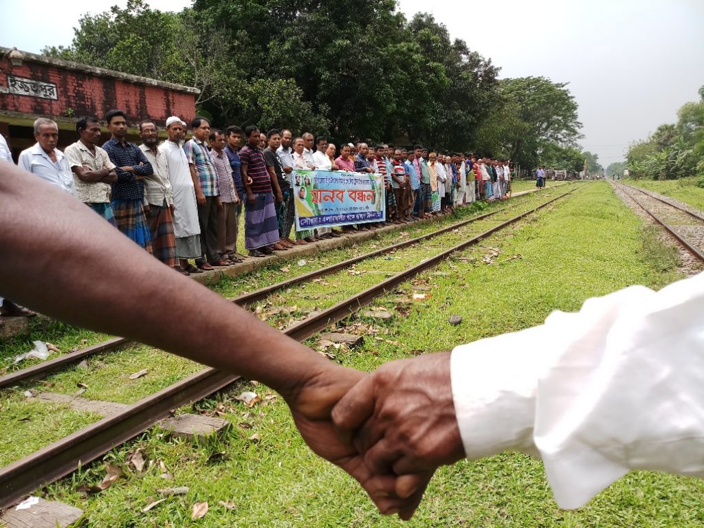 মানববন্ধনে অংশ নেন স্থানীয় ওয়ার্ড শ্রমিকলীগের সভাপতি রফিকুল ইসলাম,